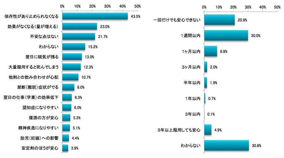 眠剤の使用に対しての不安としては、以下のものが挙げられている。