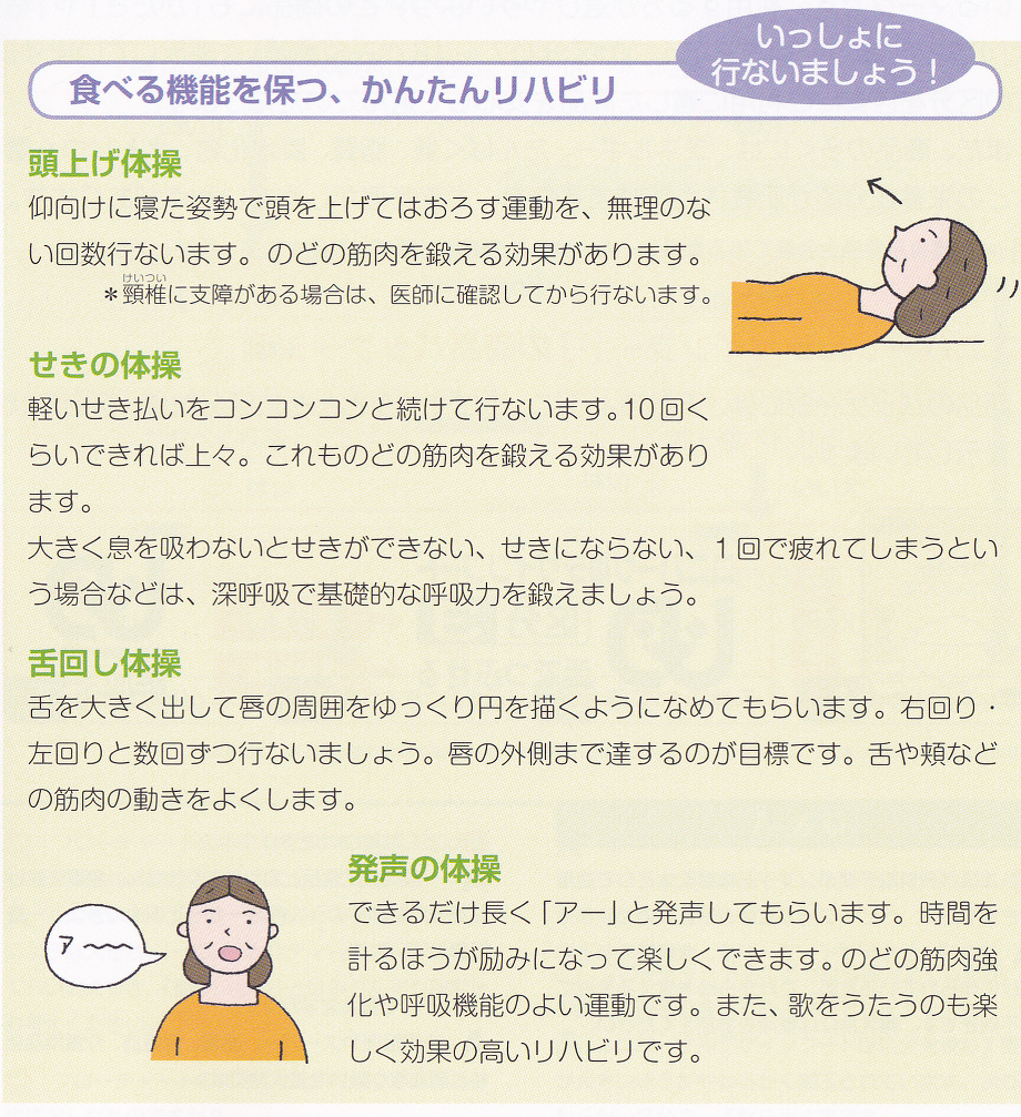 誤嚥予防のためのリハビリとして以下のものがあります。