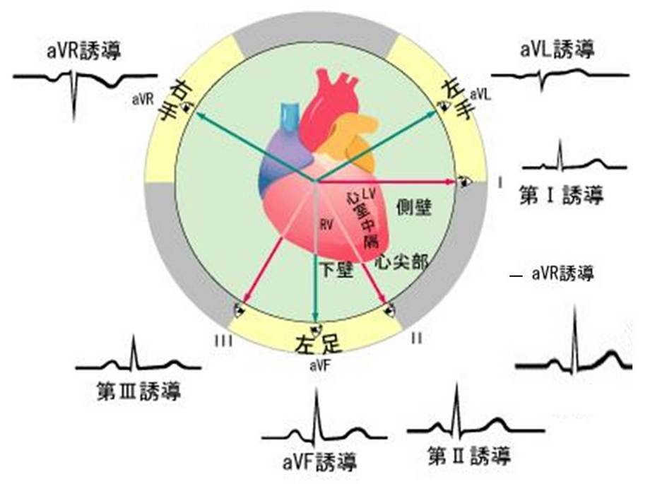 右上からaVL、Ⅰ、-aVR、Ⅱ、aVF、Ⅲ誘導の順で表示する方法である。それぞれの誘導は、上位側壁、下位側壁、心尖部、左下壁、心尖部より、右下壁をそれぞれあらわしていると考えることができる。