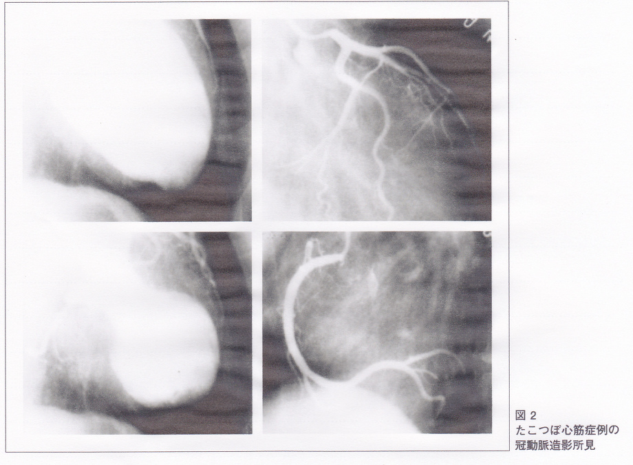 上図のように、冠動脈に病変がなく、左室の壁運動として心尖部の心筋がほとんど動かず、心基部のみが収縮するので、左室造影で蛸壺のように見えるものである。