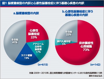 心原性脳塞栓症のほとんどが心房細動によるものである。
