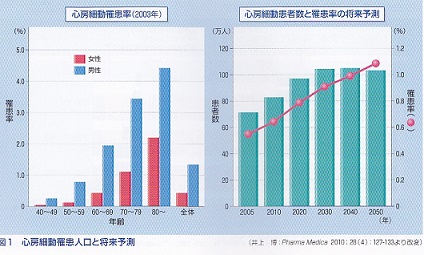 心房細動の罹患率は男女とも年齢とともに上昇してくる。
