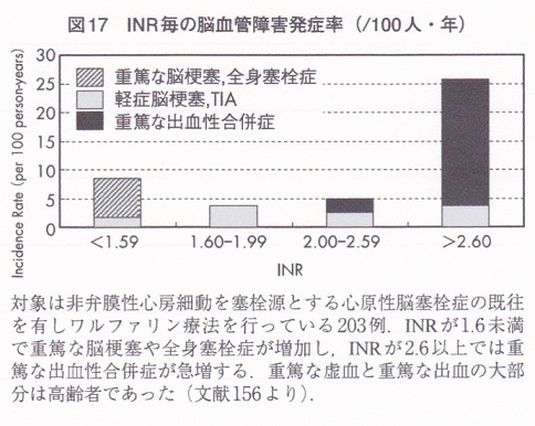 今までは抗凝固療法としてワルファリンの治療方法しかなく、ワルファリン量を判定する際にINRが指標として使われていた。60歳以下であれば2~3が推奨され、高齢者においては1.6~2.6が推奨されるようになった。