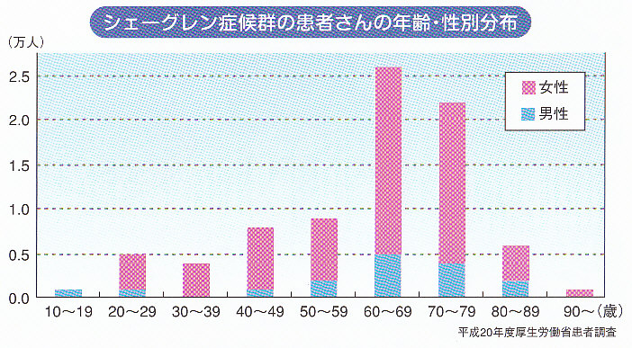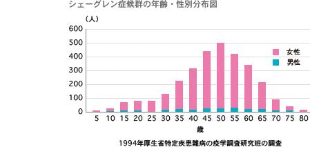 厚生労働省の研究班のデータでは1年間に病院などを受療した患者さんが15000~20000人、潜在的な患者さんはもっと多く、アメリカのデータを基に推計すると10~30万人いると考えられている。1994年の調査データでは50歳代にピークがあり、子供から80歳の老人まで発症することもあり、男性:女性=1:14と女性に多くみられる。