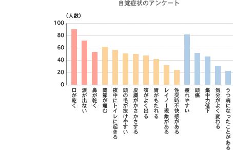 よくみられる症状としては、口腔の乾燥に続いて疲れやすいという症状の頻度が多い。