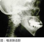 耳下腺造影検査:頬の内側の粘膜の奥の方にある唾液腺開口部(ステノ氏管)から造影剤を注入し、唾液腺の異常を検出するX線検査