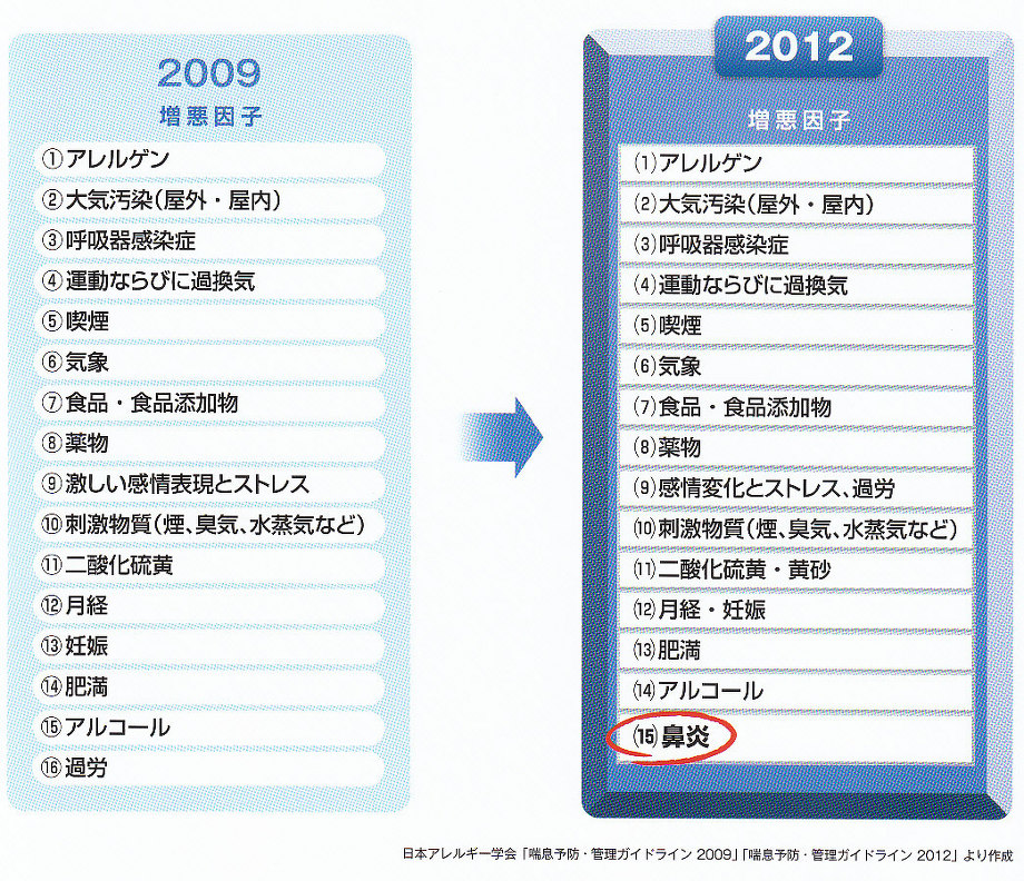 これらの結果の蓄積もあり、アレルギー性鼻炎は喘息発症のリスクや増悪因子の一つと認識されるようになってきた。