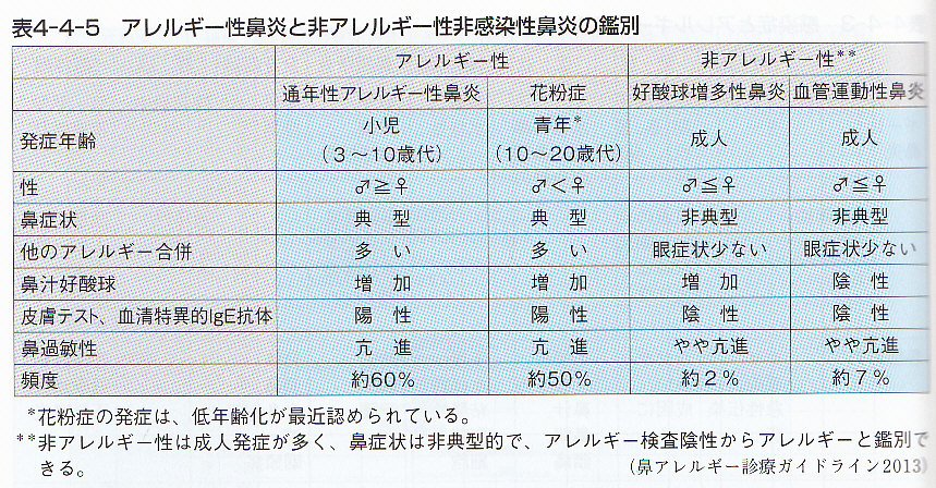 アレルギー性鼻炎と非アレルギー性非感染性鼻炎の鑑別