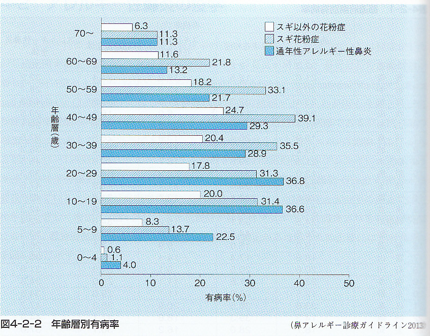 季節性アレルギー性鼻炎患者の10-15%に、通年性アレルギー性鼻炎の患者の25-40%に気管支喘息の合併がみられるといわれている。
