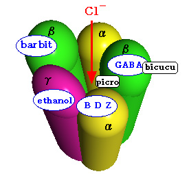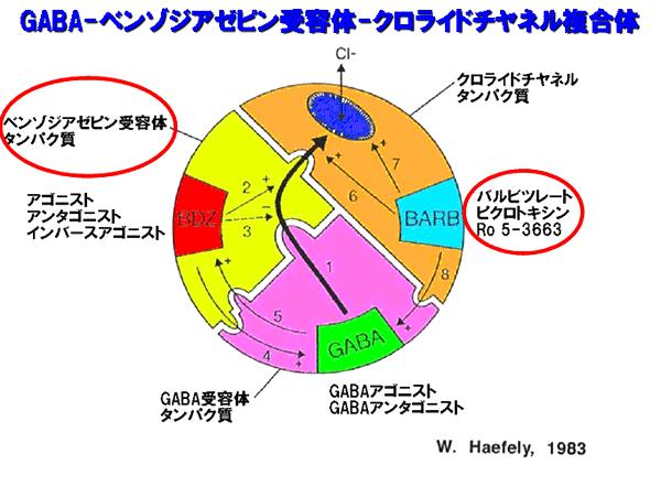 ω1受容体はα1を含んだGABAa受容体、ω2受容体はα2、α3、α5を含んだGABAaに対応すると考えられている。