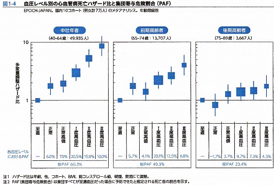 心血管死亡の約50%、脳卒中罹患の50%以上が、指摘血圧を超える血圧高値に起因するものと推定されている。