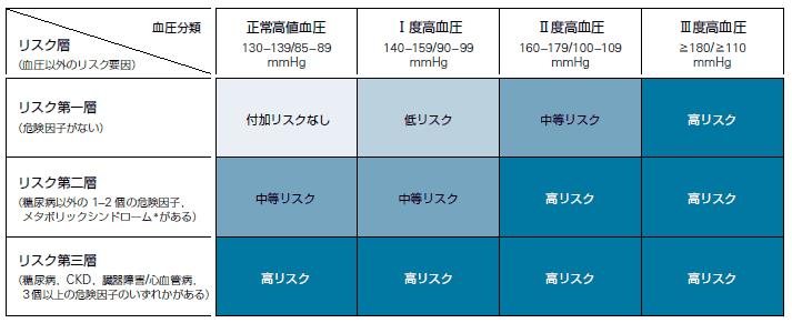 血圧値のみでなく、他のリスク因子との兼ね合いでの心血管リスクを層別化した。