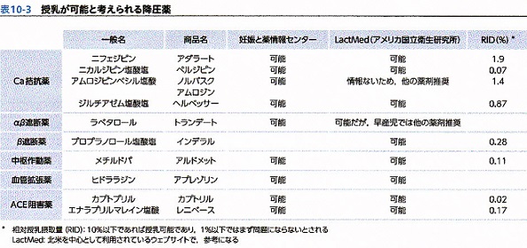授乳に関しては以下の薬剤の使用が可能とされた。