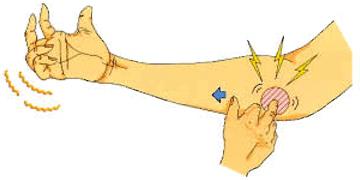 絞扼部位を軽くたたくと、シビレる範囲に叩いた刺激が強く響く。