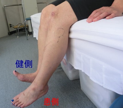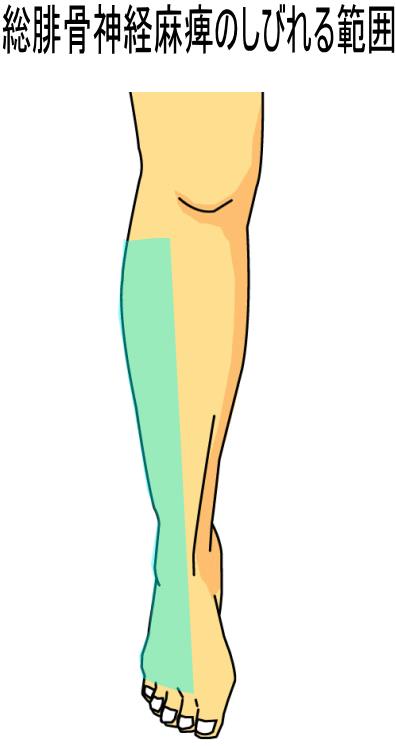 総腓骨神経は坐骨神経に由来し、膝窩を通り、腓骨頭に接して下腿外側へ廻り、下腿上部で浅・深腓骨神経に分かれる。仰臥位の方麻痺患者では、麻痺側の下腿が外側位を取るため、長期臥床していると、膝の外側面で総腓骨神経が圧迫され、神経支配部の感覚障害とともに運動麻痺が出現する。足関節での足や足趾の背屈ができなくなる。歩行は下垂足となり、L5神経根障害との鑑別が必要となる。