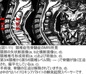 頸椎症(頸椎性神経根症):中年~高齢者の肩~腕の痛みや、腕や手のシビレが出現し、頸椎を後ろへそらせると痛みが強くなるので、上方視やうがいをすることが困難となり、上司の筋力低下や感覚の障害が出てくる。