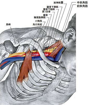 なで肩の人が多い。鎖骨が水平になるので第一肋骨との間で挟む形になる。