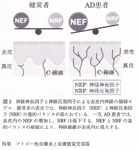 アトピー性皮膚炎患者では、通常では痒みを感じないような衣服が皮膚に軽く刷れる程度の些細な機械的刺激によっても痒みが生じる痒みの過敏状態(アロネーシス)や、本来痛みを生じて痒みを制御するような刺激も痒みとして感じる(ハイパーネーシス)が認められる。