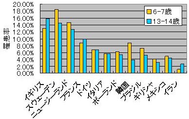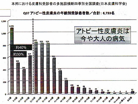アトピー性皮膚炎の年齢別受診患者数は、先進国が多いといわれていて、その中でもスウェーデンが18%と最も多く、次いで日本が多いといわれている。