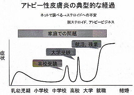 一人の人の経過を見てみると、受験時や就職する際に悪化していることがわかる。精神的なストレスが、病状の悪化にかなり寄与していることがわかる。