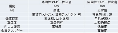 アトピー性皮膚炎は二つのタイプがあるといわれており、外因性アトピー性皮膚炎(アレルギー性アトピー性皮膚炎)と内因性アトピー性皮膚炎(非アレルギー性アトピー性皮膚炎)に分けることができる。免疫学的には内因性アトピー性皮膚炎患者ではINF-γ陽性のTh2細胞誘因性ケモカインであるCCL17/TARC濃度が低い。