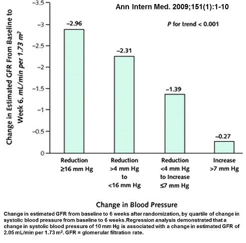 血圧の低下が大きい群においてよりeGFRの低下が顕著だった。