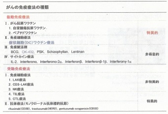 ① 能動的免疫療法:ガン抗原や樹状細胞を用いたワクチン療法である特異的免疫療法と、免疫賦活剤やサイトカインを用いた非特異的免疫療法に分けられる。