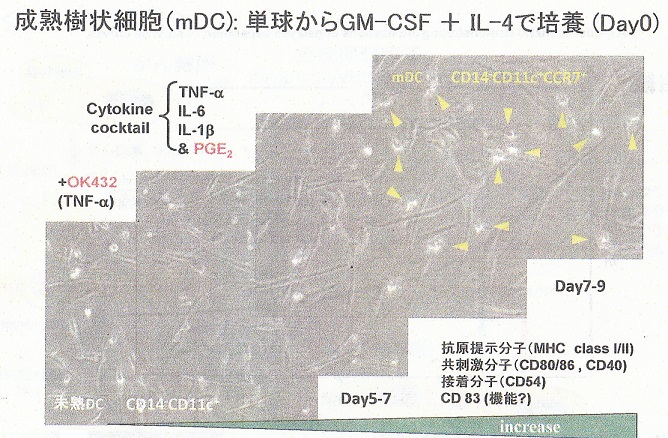 樹状細胞を作る際には単球からTND-α、IL-6、IL-1βなどのサイトカインを使って作成される。