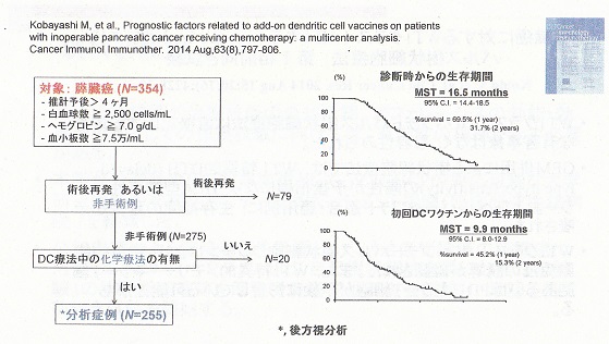 膵臓癌の患者で手術ができない人が8割、化学療法の評価ができた人50%生存期間が6から8ヵ月が、16か月に伸びが。
