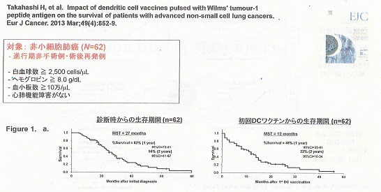 62例の非小細胞肺癌では、MSTは13ヶ月が27ヶ月と伸びていて、樹状細胞開始からでも12ヶ月と伸びている。