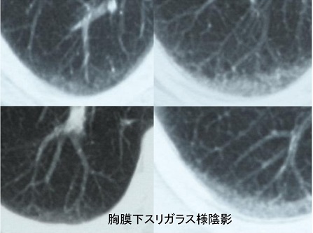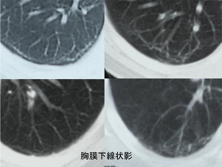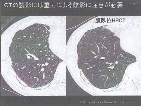 所見としてのSCLSの読影の際には、肺内の水分が重力により下方に集まってSCLS様陰影を呈することがある点に注意が必要で、腹臥位のCTを取ると消失するので、鑑別は可能である。