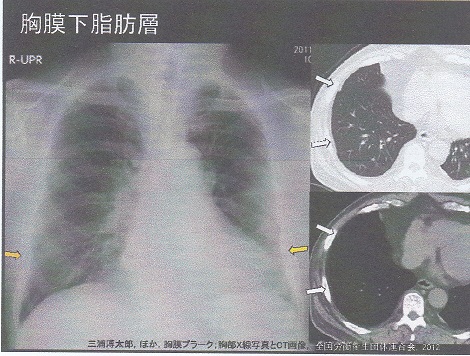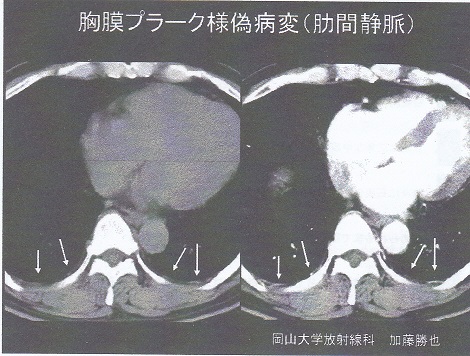 胸膜プラーク:胸膜肥厚斑、胸膜版、限局性胸膜肥厚のことで