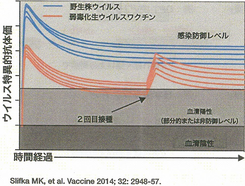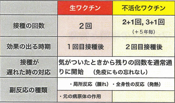 生ワクチンは長期の免疫効果が得られるが、不活化ワクチンの場合には6か月後以降の追加接種が必要である。