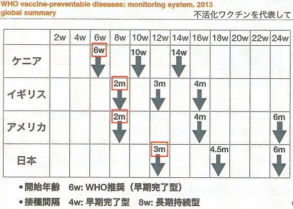 疾患の発生状況や衛生状態が異なるため、ワクチンの接種開始時期や間隔は国によって異なっている。