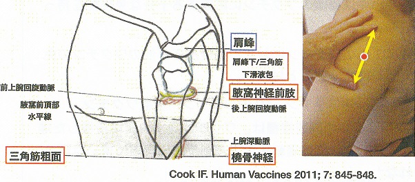 三角筋に接種する場合には、安全に摂取するために解剖学的な知識を念頭において行う必要がある。