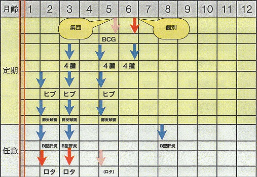 日本においてのワクチン接種開始月齢・年齢は以下のようになっている。