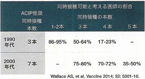 アメリカにおいては、同時接種の回数の推奨数を徐々に増やしている。
