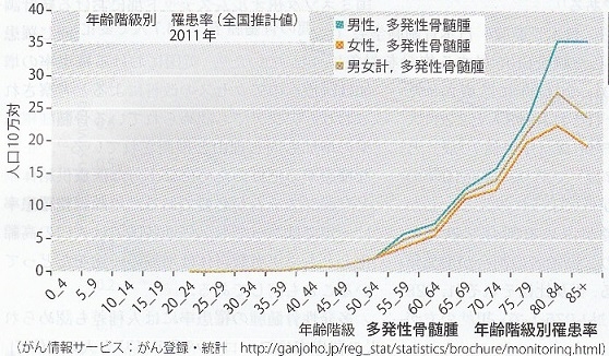 2013年の多発性骨髄腫の死亡者数は、男性で3416人、女性で3444人、合計6860人である。