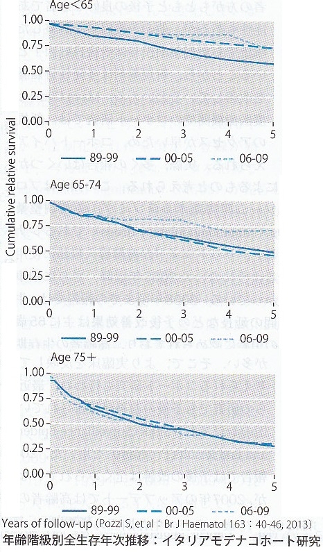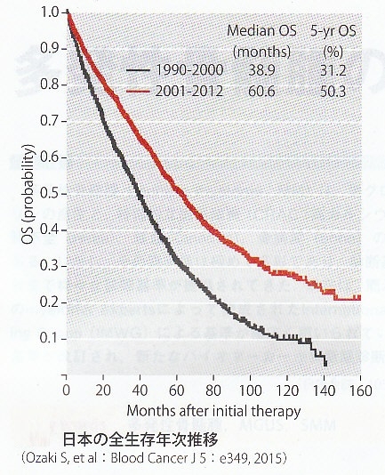 日本における治療効果においても、2001寝に高予後の改善が見られてきており、高齢者においても同様の傾向を認めている。