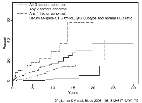 Non-IgM-MGUSは、骨髄腫、孤発性形質細胞腫、免疫グロブリン血症、免疫グロブリン関連アミロイドーシスなどへの進展が1年で1%とされる。