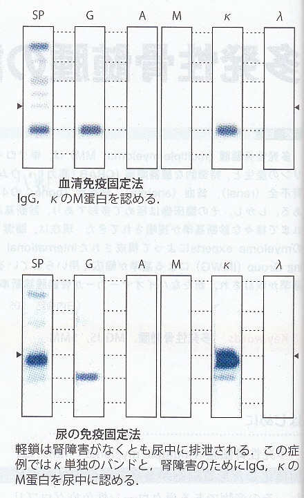 血清免疫固定法、尿免疫固定法で判定を行う。