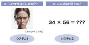人間の脳には、2つのシステムが働いており、システム1は早い思考で、負荷が小さく、システム2は遅い思考で負荷が大きい仕組みである。(カーネマン:人間の意思決定の2つの認知プロセス:システム1とシステム2『ファースト&スロー』)