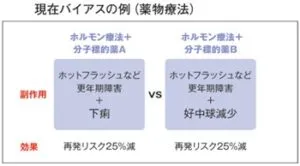 投与初期にはあまり効果が無いがそのうちよく効く薬剤Aと最初からある程度高い効果が期待できるが、最終的には薬効が薬剤Aより劣る薬剤Bがあった場合、多くの場合薬剤Bが選択される。